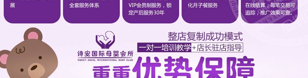 2、售后支持:诗安国际母婴会所售后网络化管理体系,任何问题24小时必须解决。