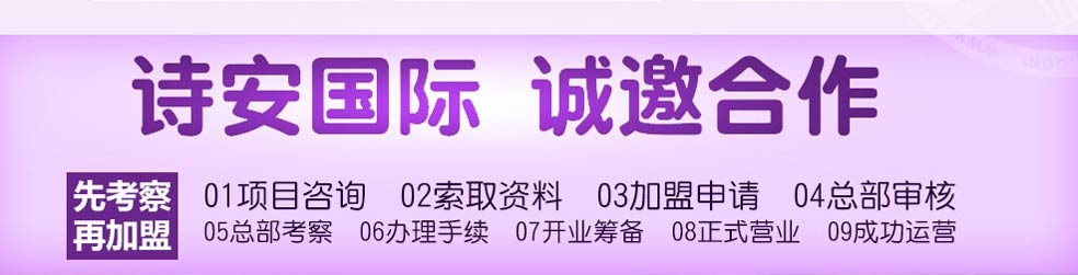 5、合作达成:诗安国际母婴会所提供专业的投资分析报告,经双方确认无误后签订《特许经营合同》,自合同签订之日起,2-7个工作日审批。