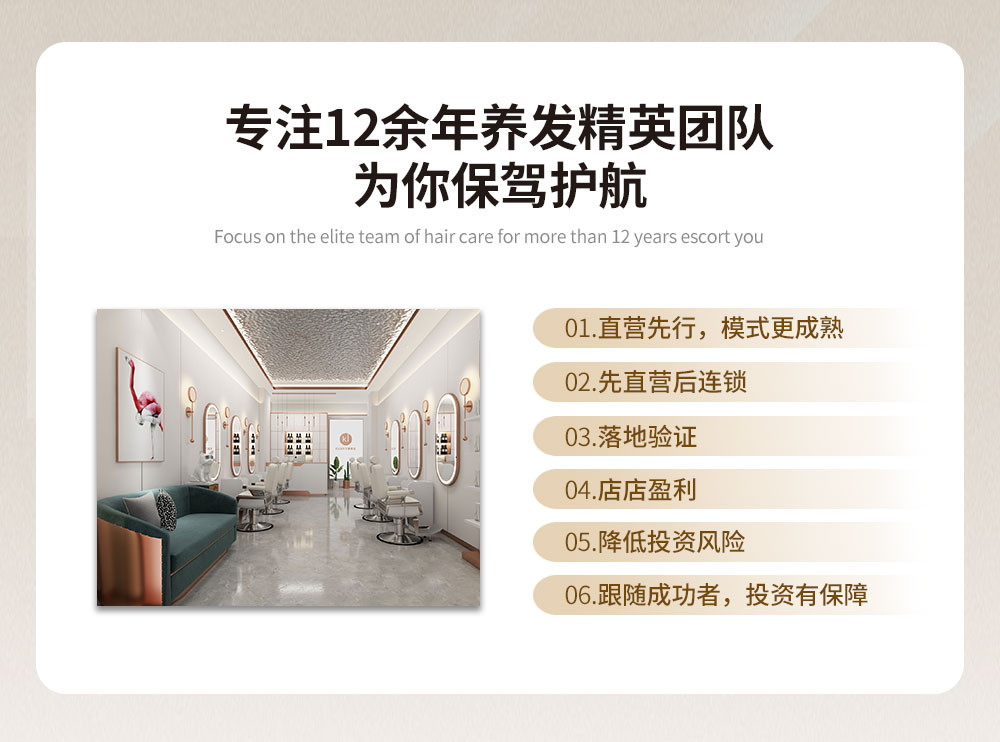 为现代人提供护肤、彩妆、养生、养发、健康服务的机构,品牌创始团队,从事养发行业研究、运营、管理13余年,带领百余名行业精英,以“先成人,后达已”的共享商业模式,支持美业精英创造自己的事业平台。我们始终追求“消费放心,服务放心,产品放心”的用户价值,专注十年的发展路径稳步前行。