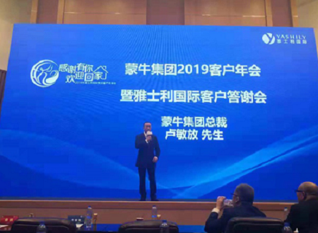 据了解,本次会议是蒙牛集团成立以来规模较大的一次客户年会。会议以“天生要强,共赢**”为主题,蒙牛集团董事长马建平、蒙牛集团总裁卢敏放以及蒙牛集团各核心高管出席会议,与来自全国各地近万名蒙牛人和客户伙伴们共聚一堂,全面回顾2018奋斗历程,勠力同心再创2019佳绩。